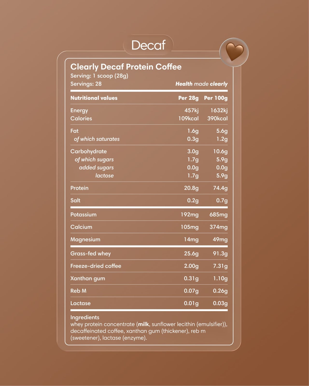 Wir verwenden ausschließlich 100 % kolumbianischen arabica Kaffee. Die Bohnen werden sorgfältig ausgewählt und gefriergetrocknet, um ihren vollen Geschmack und ihr Aroma zu bewahren. Im Gegensatz zu vielen Protein-Kaffees, die Standard-Instantkaffee oder Aromen verwenden, bekommst du bei uns echten Kaffee in jedem Scoop.